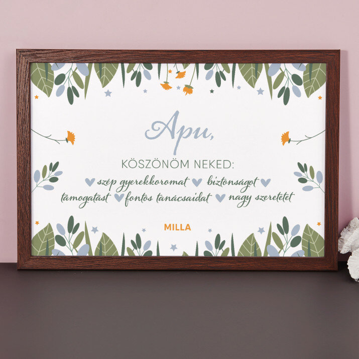 Az oklevél 20x30cm méretű fotópapírra van kinyomtatva és elegáns, 20x30cm méretű keretbe foglalva.