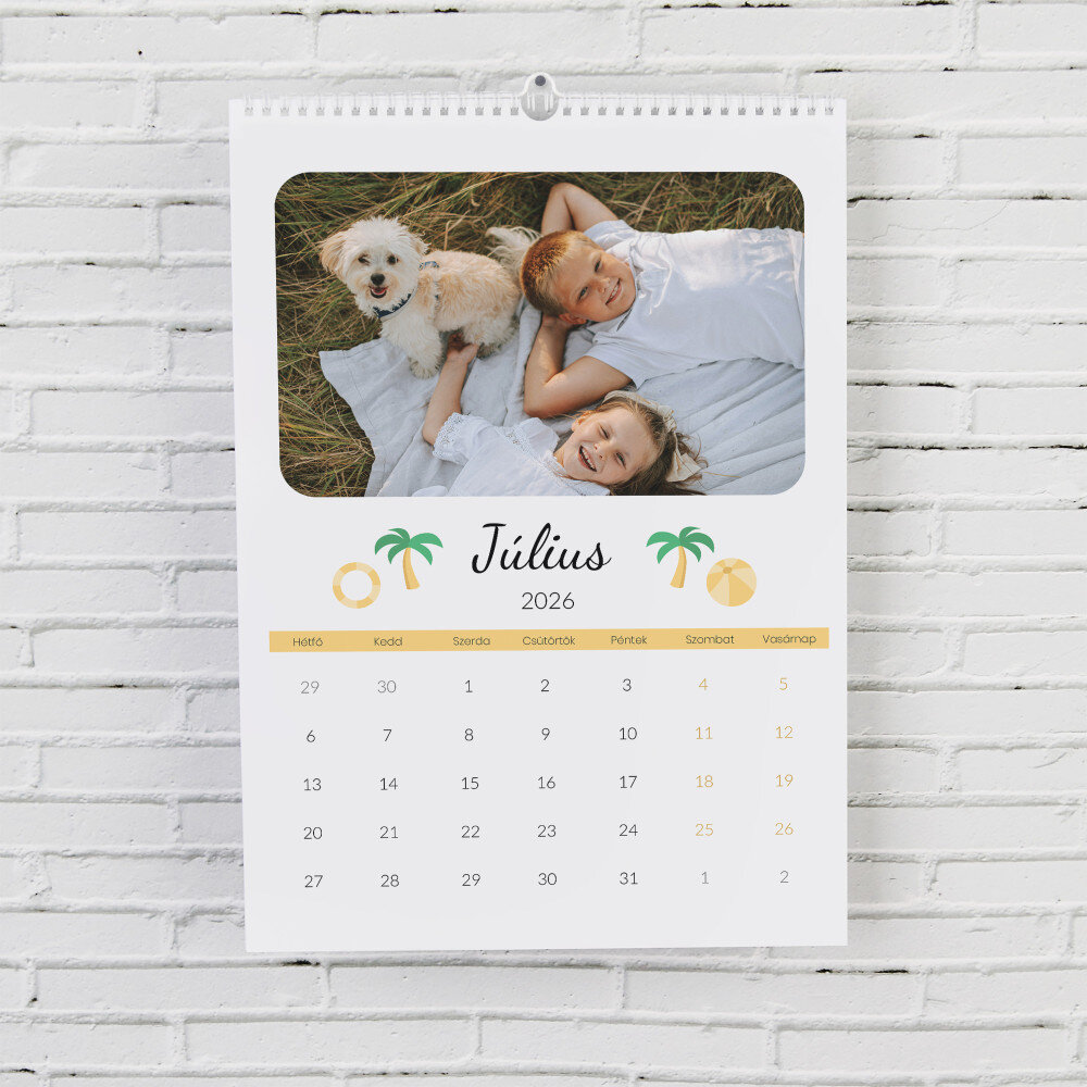 A naptár A3-as formátumban kerül kinyomtatásra.Minden hónap külön, magas minőségű papírból készült lapon van kinyomtatva. A nyomtatás gyönyörű, a színek telítettek, és a hatás tartós. Minden hónaphoz választhatsz egy fényképet, így a naptár mindig nagyszerűen néz ki!