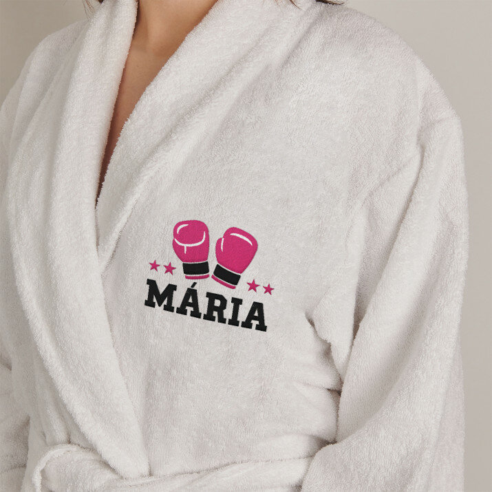 Univerzális, fehér színű fürdőköpeny, 100% pamut frottírból készült. Kényelmes, szép, puha - tökéletes kényelmet nyújt, amikor egy nehéz nap után itt az ideje a pihenésnek. Ébredés után, ha felvesszük rögtön felmelegít. A fürdőköpeny csodaszép egyedi hímzéssel díszítve, javítja a közérzetet, mindezek a fürdőköpenyt még különlegesebb ajándékká teszik!A terméknek elegáns gallérja és zsebei vannak, hogy tündökölhess az otthoni divat, esti bemutatóján. A fürdőköpeny mérete univerzális, a tömege 350 g/m2. Uniszex.