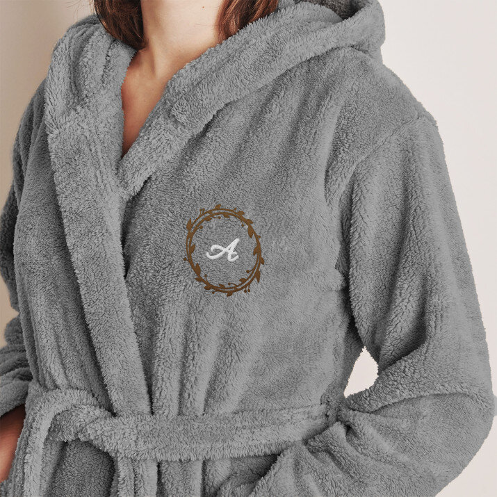 Univerzális fleece fürdőköpeny szürke színben, 100% poliészter wellsoftból. Kényelmes, szép, puha - tökéletes kényelmet nyújt, amikor egy nehéz nap után itt az ideje a pihenésnek. Felébredés után is rögtön melegít. A fürdőköpeny csodaszép egyedi hímzéssel vannak díszítve, amitől az ember jobban érzi magát, és ami azt teszi, hogy a fürdőköpeny még különlegesebb ajándékká válnak!A terméknek elegáns gallérja és zsebjei vannak, hogy tündökölhess az otthoni divat esti bemutatóján. A fürdőköpeny mérete univerzális, a tömege 300 g/m2. Uniszex.