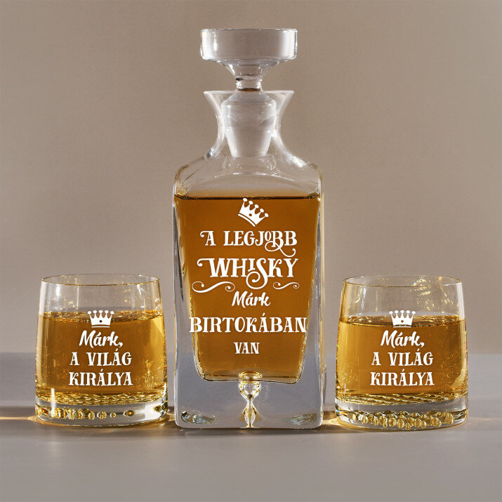4 vátozatban rendelhető gravírozott whisky dekantáló és poharak készlete:Dekantáló + 1 pohár
