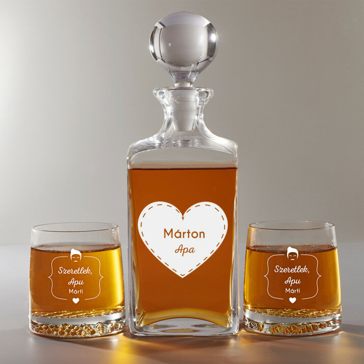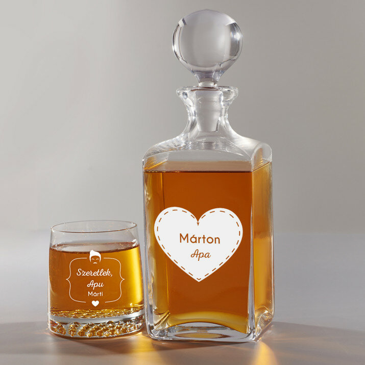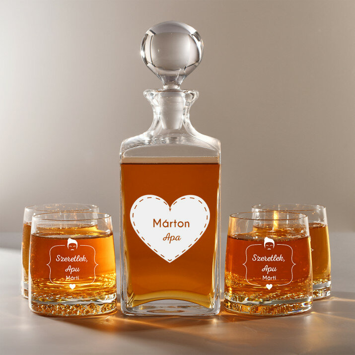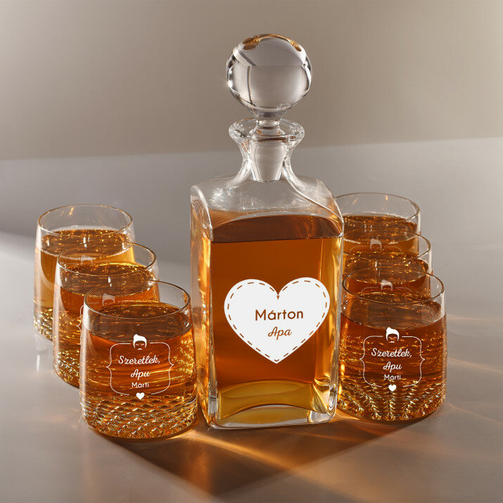 4 vátozatban rendelhető gravírozott whisky dekantáló és poharak készlete:Dekantáló + 1 pohár