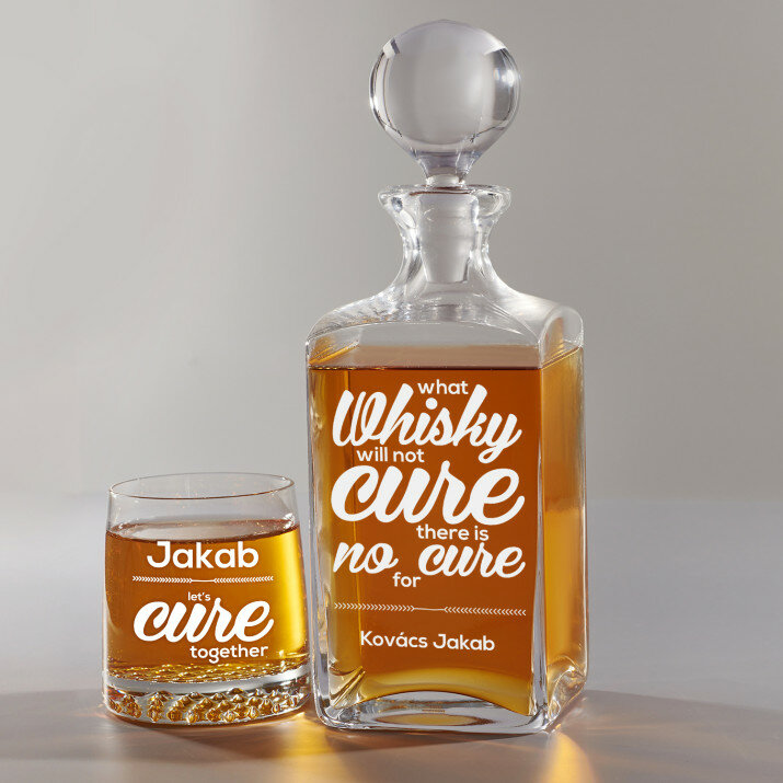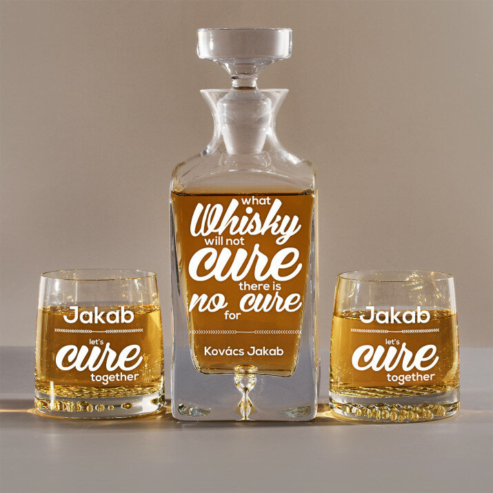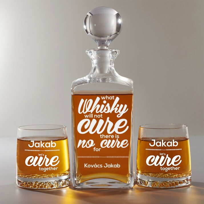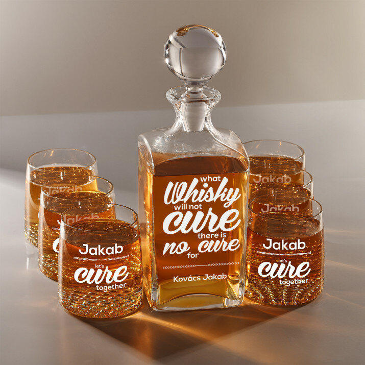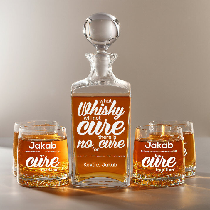 4 vátozatban rendelhető gravírozott whisky dekantáló és poharak készlete:Dekantáló + 1 pohár