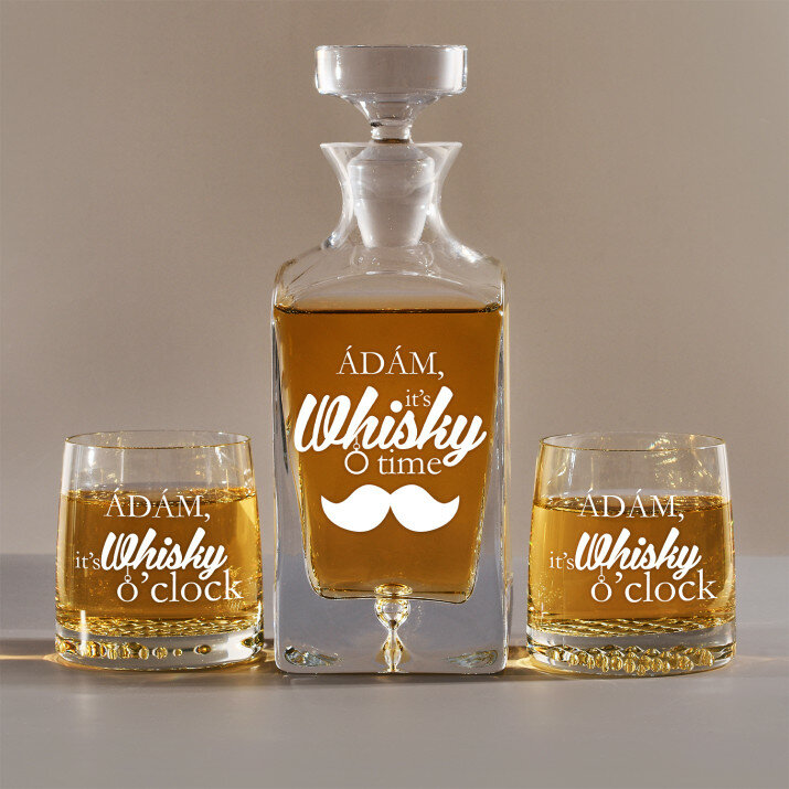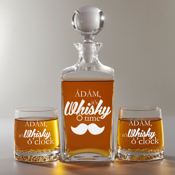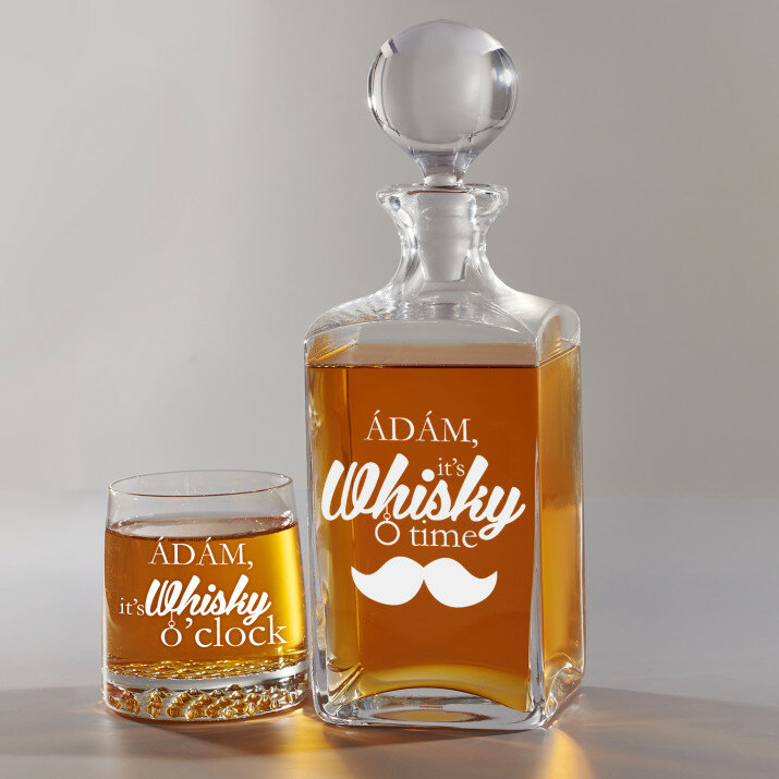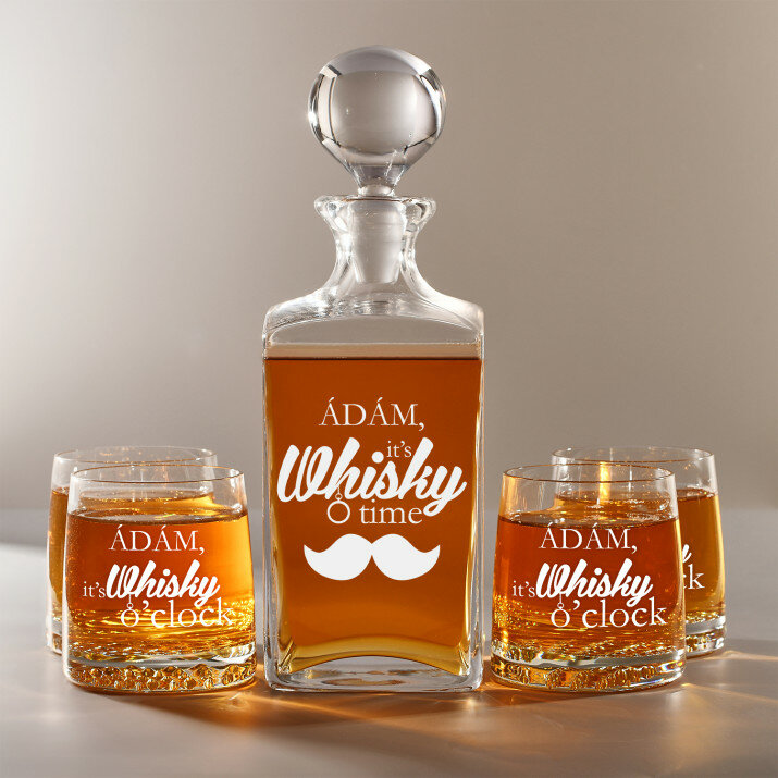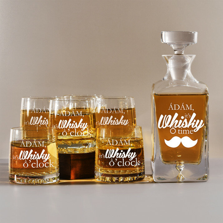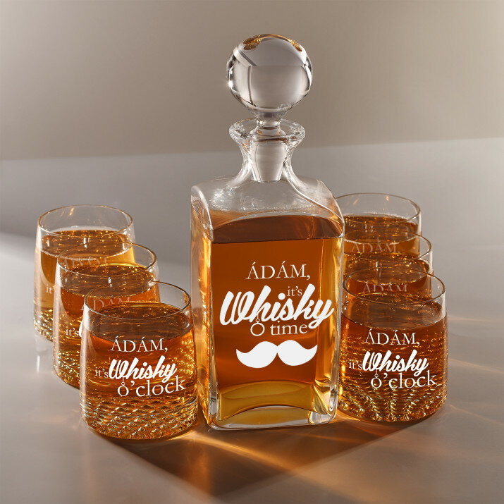 4 vátozatban rendelhető gravírozott whisky dekantáló és poharak készlete:Dekantáló + 1 pohár