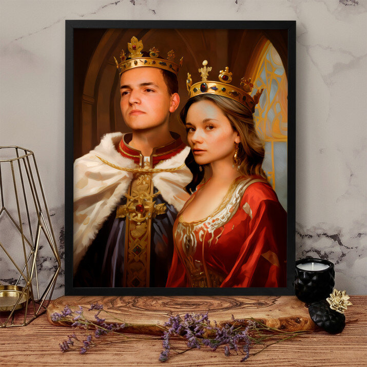 Legyél Te is a Királyi Portré hőse, azaz olyan egyedi nyomtatásnak, amelyet az általad beküldött fényképből készítünk. Ez rendkívüli ajándék, amelynek köszönhetően egyik szeretted hercegnővé, tábornokká vagy akár királlyá válhat! Csak egy jó minőségű fotódra van szükségünk, hogy a grafikusunk elkészítse a profi tervezetet az általad kiválasztott stílusban. Miután jóváhagyod a vázlatot, olyan ajándékot alkotunk, amely lenyűgözi szeretteidet.TERMÉKINFORMÁCIÓK