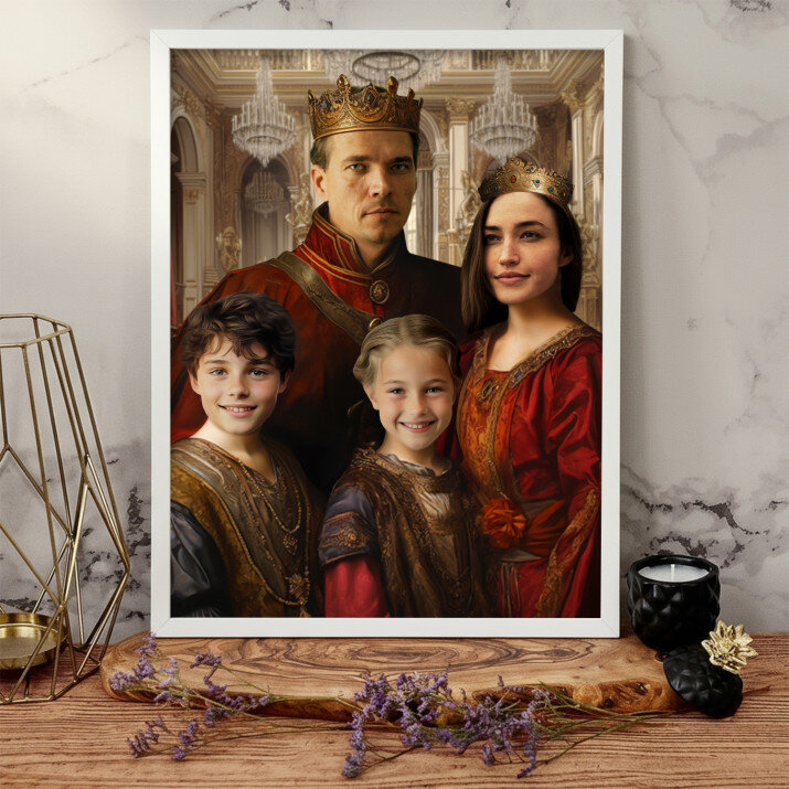 Legyél Te is a Királyi Portré hőse, azaz olyan egyedi nyomtatásnak, amelyet az általad beküldött fényképből készítünk. Ez rendkívüli ajándék, amelynek köszönhetően egyik szeretted hercegnővé, tábornokká vagy akár királlyá válhat! Csak egy jó minőségű fotódra van szükségünk, hogy a grafikusunk elkészítse a profi tervezetet az általad kiválasztott stílusban. Miután jóváhagyod a vázlatot, olyan ajándékot alkotunk, amely lenyűgözi szeretteidet.TERMÉKINFORMÁCIÓK