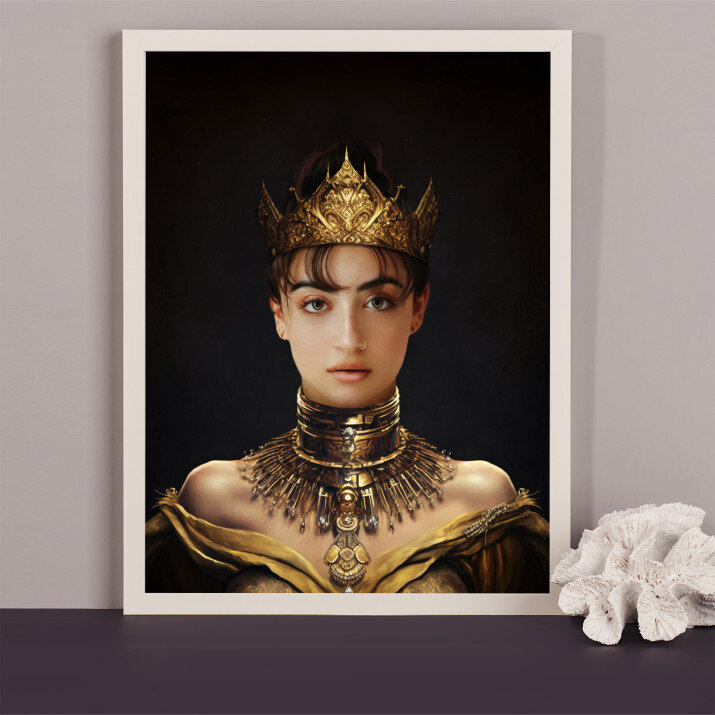 Legyél Te is a Királyi Portré hőse, azaz olyan egyedi nyomtatásnak, amelyet az általad beküldött fényképből készítünk. Ez rendkívüli ajándék, amelynek köszönhetően egyik szeretted hercegnővé, tábornokká vagy akár királlyá válhat! Csak egy jó minőségű fotódra van szükségünk, hogy a grafikusunk elkészítse a profi tervezetet az általad kiválasztott stílusban. Miután jóváhagyod a vázlatot, olyan ajándékot alkotunk, amely lenyűgözi szeretteidet.TERMÉKINFORMÁCIÓK