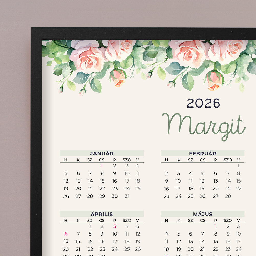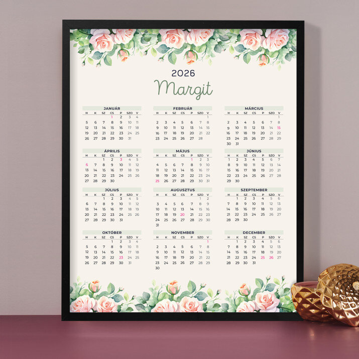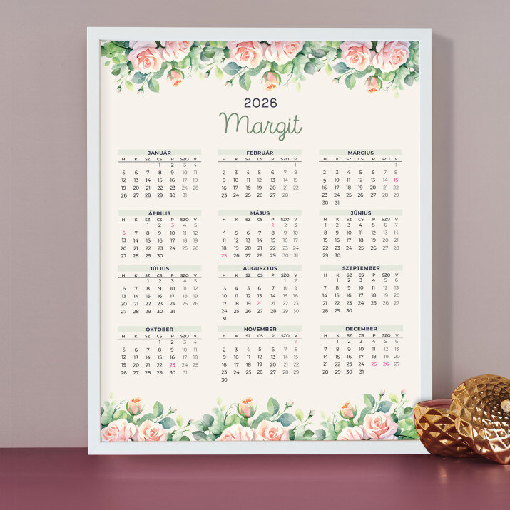 A személyre szabott, bekeretezett naptár remek ajándék ötlet, amely minden belső térhez tökéletes! Az egész év egy oldalra került, így az összes hónap napjai egyben láthatóak. A fotópapírra készült nyomat gyönyörű, a színek telítettek és a kiváló minősége miatt, tartósan megmaradnak. Tökéletes ajándék és egyben maradandó emlék is!A termék méretei: 40 x 50 cm