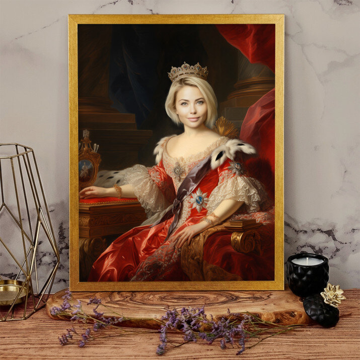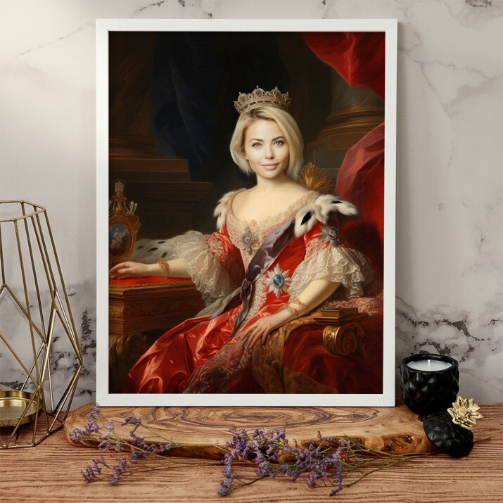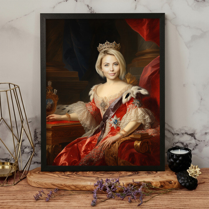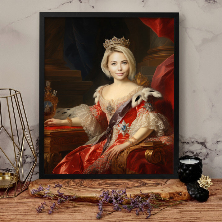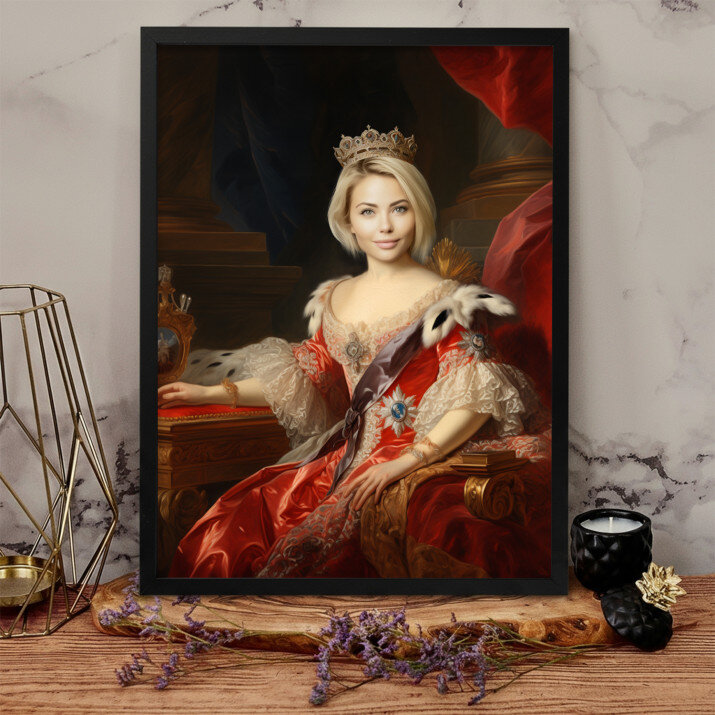 Legyél Te is a Királyi Portré hőse, azaz olyan egyedi nyomtatásnak, amelyet az általad beküldött fényképből készítünk. Ez rendkívüli ajándék, amelynek köszönhetően egyik szeretted hercegnővé, tábornokká vagy akár királlyá válhat! Csak egy jó minőségű fotódra van szükségünk, hogy a grafikusunk elkészítse a profi tervezetet az általad kiválasztott stílusban. Miután jóváhagyod a vázlatot, olyan ajándékot alkotunk, amely lenyűgözi szeretteidet.TERMÉKINFORMÁCIÓK