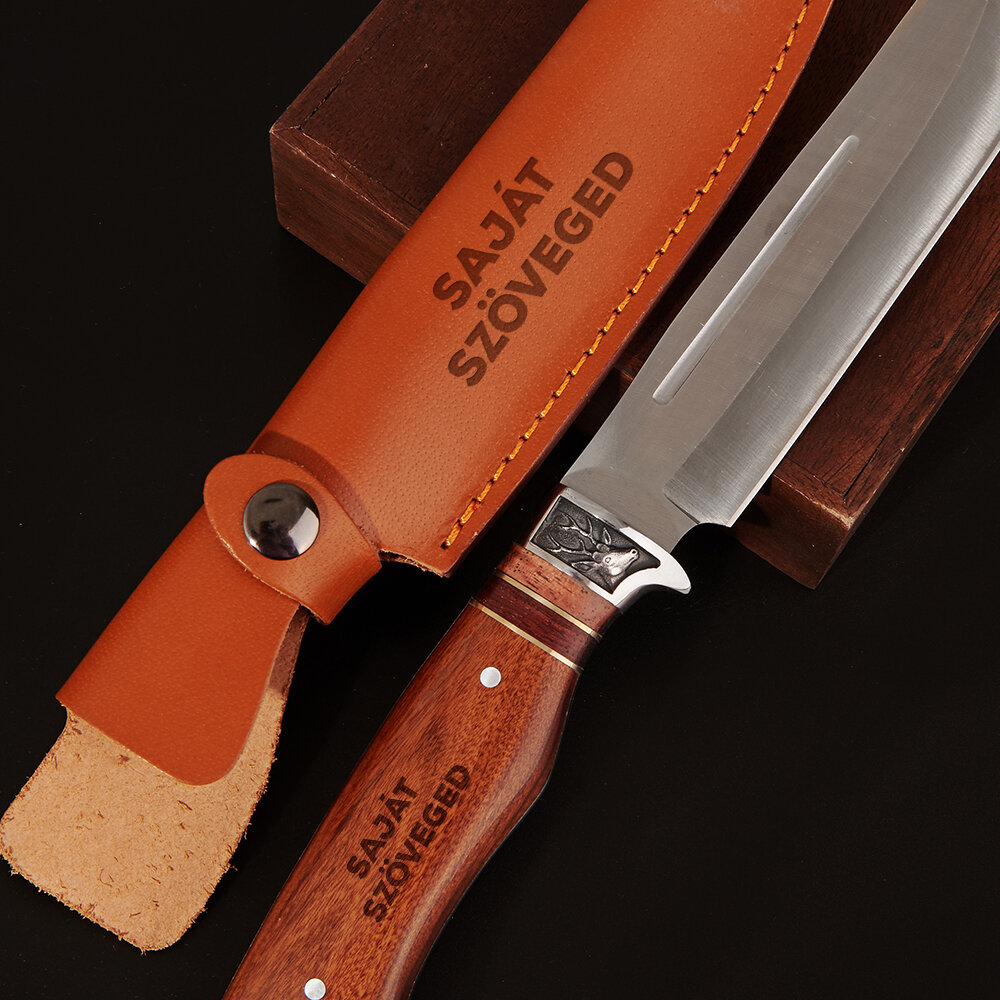 A kés nagyszerű ajándék lesz egy vadásznak, a vándorutakon kiváló segítő eszköz lesz. Agombaszedés és horgászatrajongói is örülni fognak egy ilyen ajándéknak. A vadászkés hasznos lesz minden férfias túlélőexpedíción. Még egy családi tábortűz körüli összejövetelnél is kiválóan helyt áll!GRAVÍROZÁS