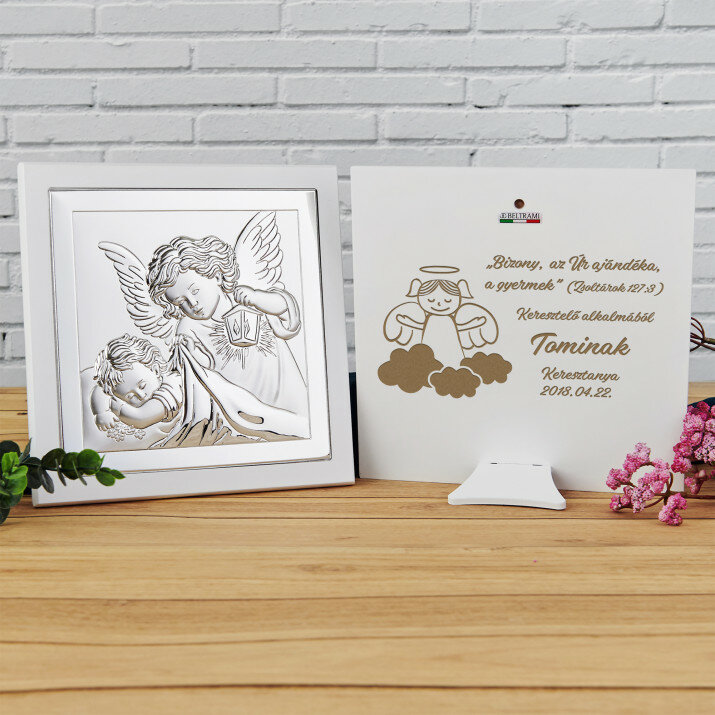 Gyermek - Ezüst gravírozott kép - Lámpás angyal