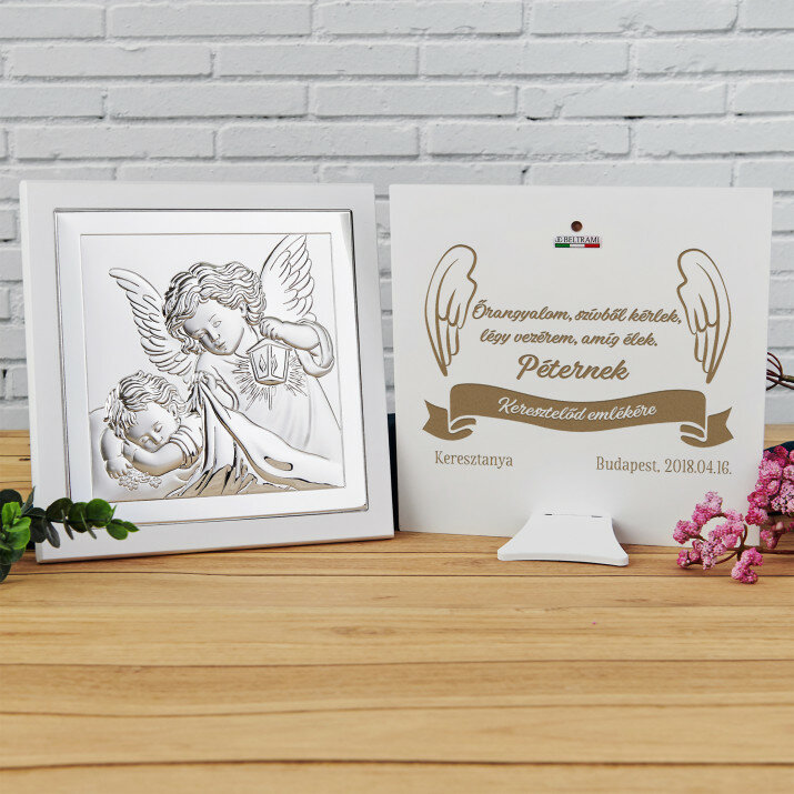 Őrangyalom - Ezüst gravírozott kép - Lámpás angyal