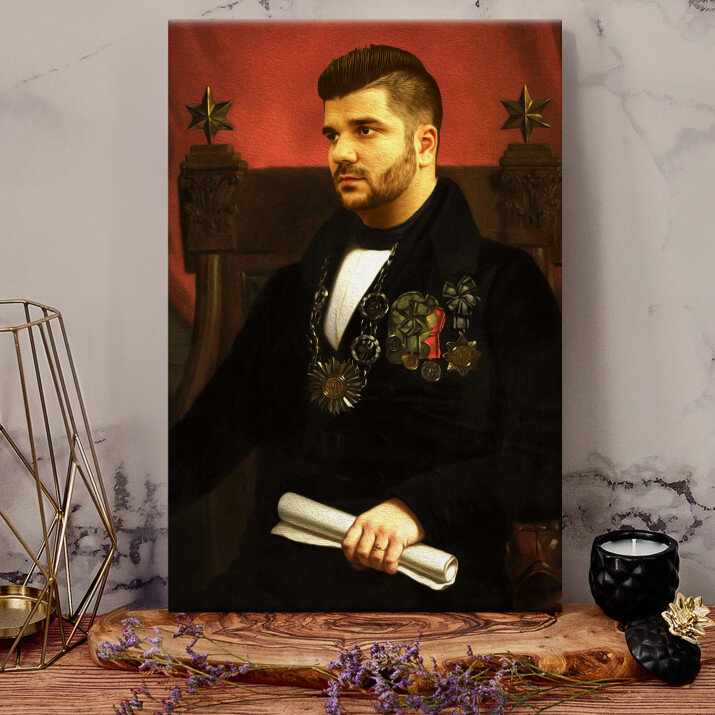 Egy ilyen vászonkép kétségtelenül rendkívül kreatív ajándék, amellyel meglepheted egyik szerettedet. A királyi portré olyan eredeti fali dekoráció, amely mosolyt és igazi pozitív energiát hoz!KIRÁLYI PORTRÉ