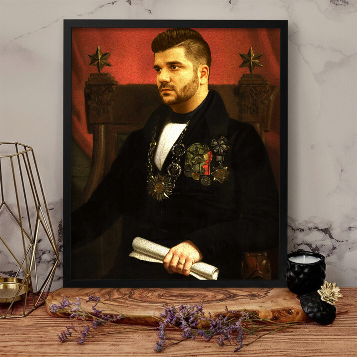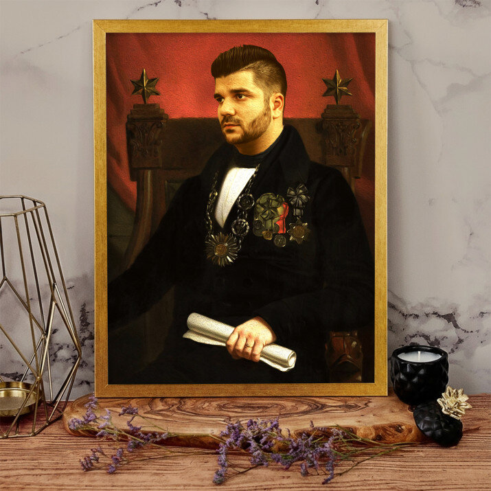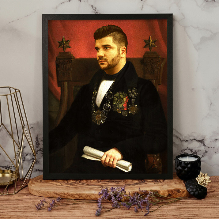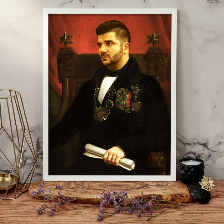 Legyél Te is a Királyi Portré hőse, azaz olyan egyedi nyomtatásnak, amelyet az általad beküldött fényképből készítünk. Ez rendkívüli ajándék, amelynek köszönhetően egyik szeretted hercegnővé, tábornokká vagy akár királlyá válhat! Csak egy jó minőségű fotódra van szükségünk, hogy a grafikusunk elkészítse a profi tervezetet az általad kiválasztott stílusban. Miután jóváhagyod a vázlatot, olyan ajándékot alkotunk, amely lenyűgözi szeretteidet.TERMÉKINFORMÁCIÓK