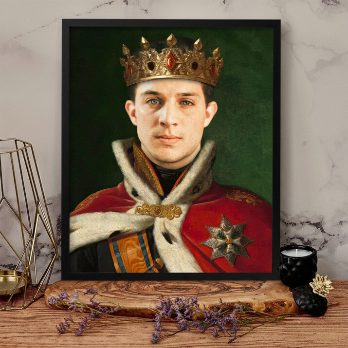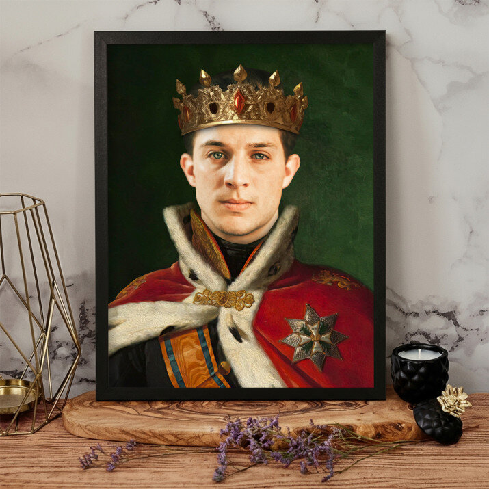 Legyél Te is a Királyi Portré hőse, azaz olyan egyedi nyomtatásnak, amelyet az általad beküldött fényképből készítünk. Ez rendkívüli ajándék, amelynek köszönhetően egyik szeretted hercegnővé, tábornokká vagy akár királlyá válhat! Csak egy jó minőségű fotódra van szükségünk, hogy a grafikusunk elkészítse a profi tervezetet az általad kiválasztott stílusban. Miután jóváhagyod a vázlatot, olyan ajándékot alkotunk, amely lenyűgözi szeretteidet.TERMÉKINFORMÁCIÓK
