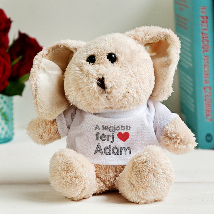 A Te nyomtatásoddal ellátott pólót viselő plüssmackó puha és kellemes tapintású. A póló poliészterből készült. A nyomtatás tartós, a színei élénkek. A plüssjáték a következő változatokban elérhető:- Elefánt - magasság 16 cm