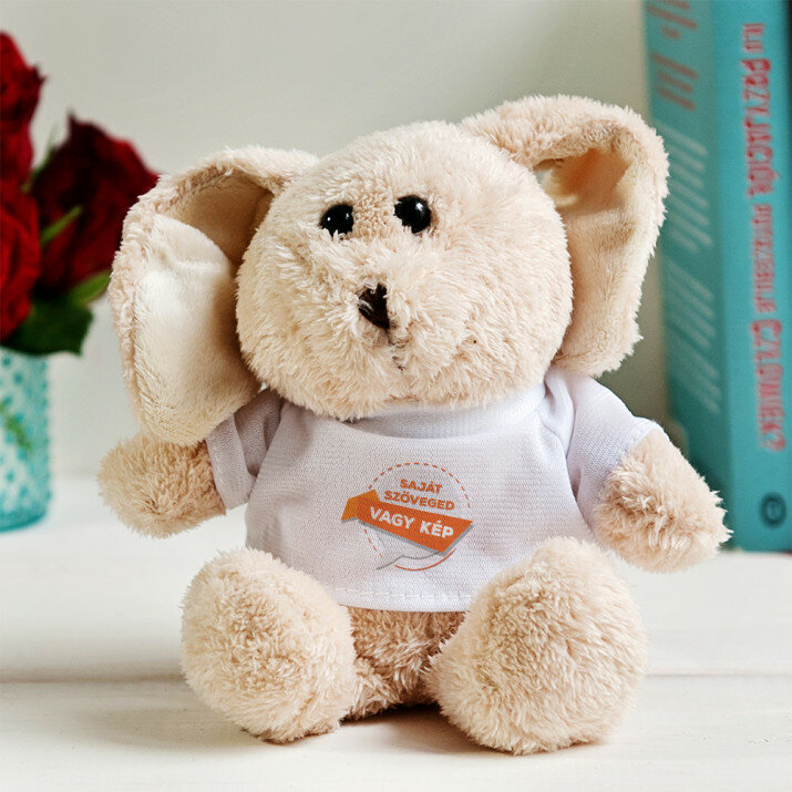 A Te nyomtatásoddal ellátott pólót viselő plüssmackó puha és kellemes tapintású. A póló poliészterből készült. A nyomtatás tartós, a színei élénkek. A plüssjáték a következő változatokban elérhető:- Elefánt - magasság 16 cm