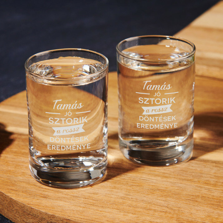 Elegáns feles poharak kiváló minőségű, színtelen üvegből. Szolid, jellegzetes formájának és tökéletesen kiegyensúlyozott arányainak köszönhetően mindenkinek tetszeni fognak, ezenkívül ideálisak különböző összejövetelekre. A termék sima felületén személyre szabott gravírozást helyezünk el, hogy még élvezetesebbé tegyük a koccintást! A feles poharak külön-külön vagy 2, 4, 6 darabos készletben kaphatók.. Moshatóak mosogatógépben is.Űrtartalom: 50 ml