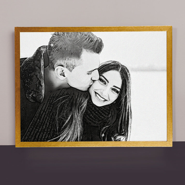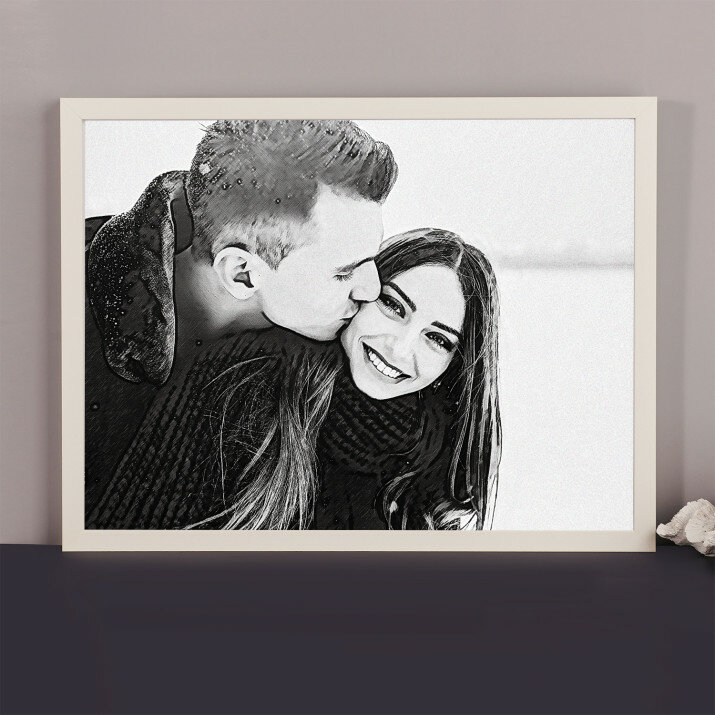 A vázlatos kép az Ön fényképe feltűnő szürke tónusokkal, fokozott kontraszttal és mélyített feketével. A részletekre nagy odafigyeléssel készített nyomat meg fogja lepni szeretteit!STÍLUSOS PORTRÉ