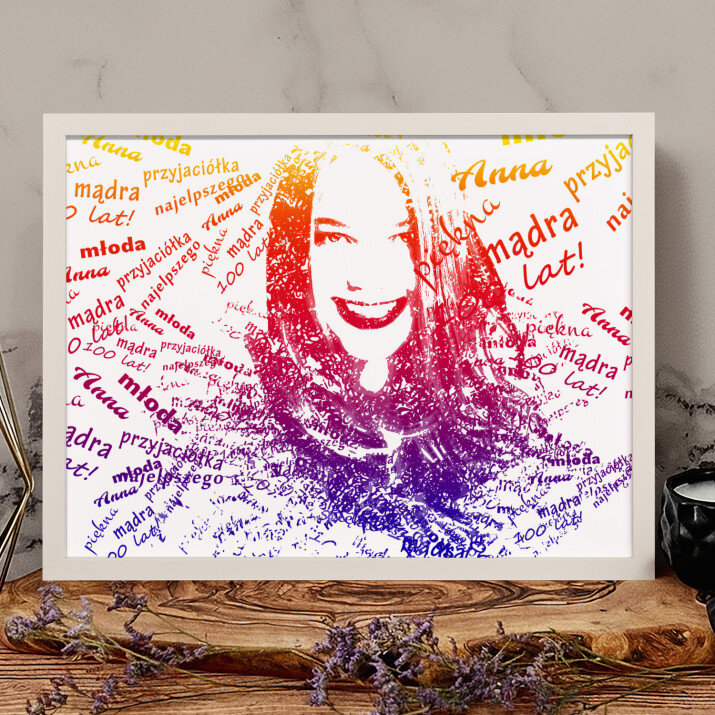 Az Ön által választott szavakkal készült fénykép. Küldj üzenetet egy közelednek ezzel az egyedi és színes módon. Meglepő hatás, amely vonzza a figyelmet.STÍLUSOS PORTRÉ