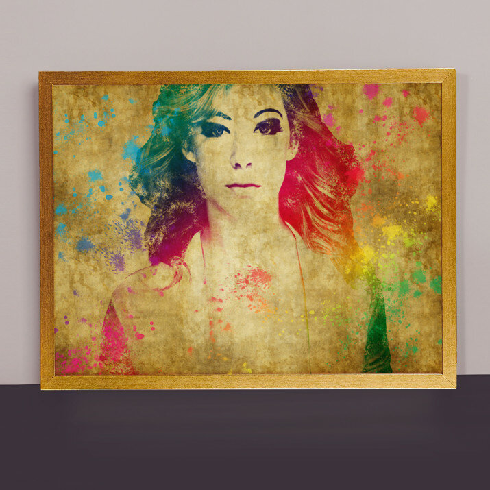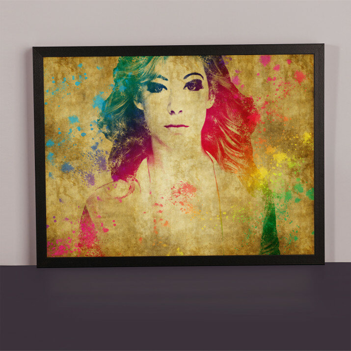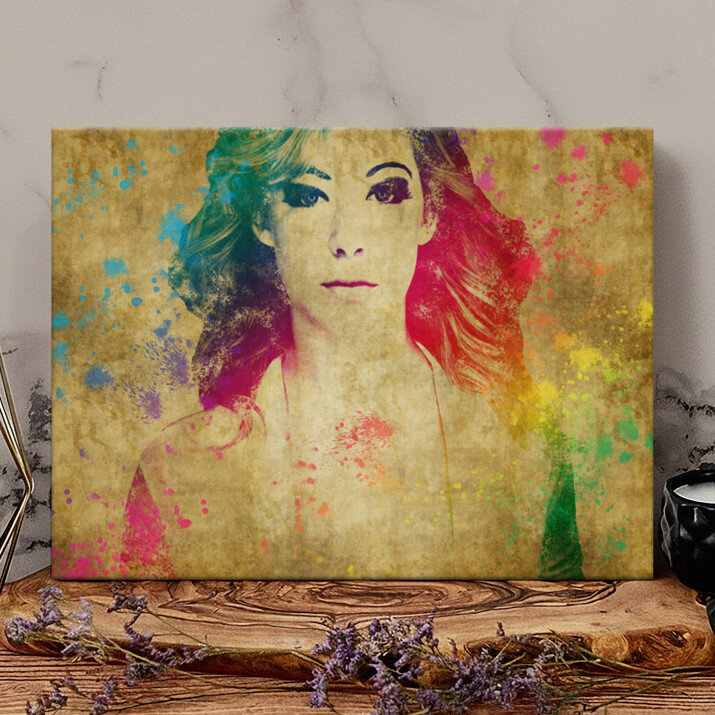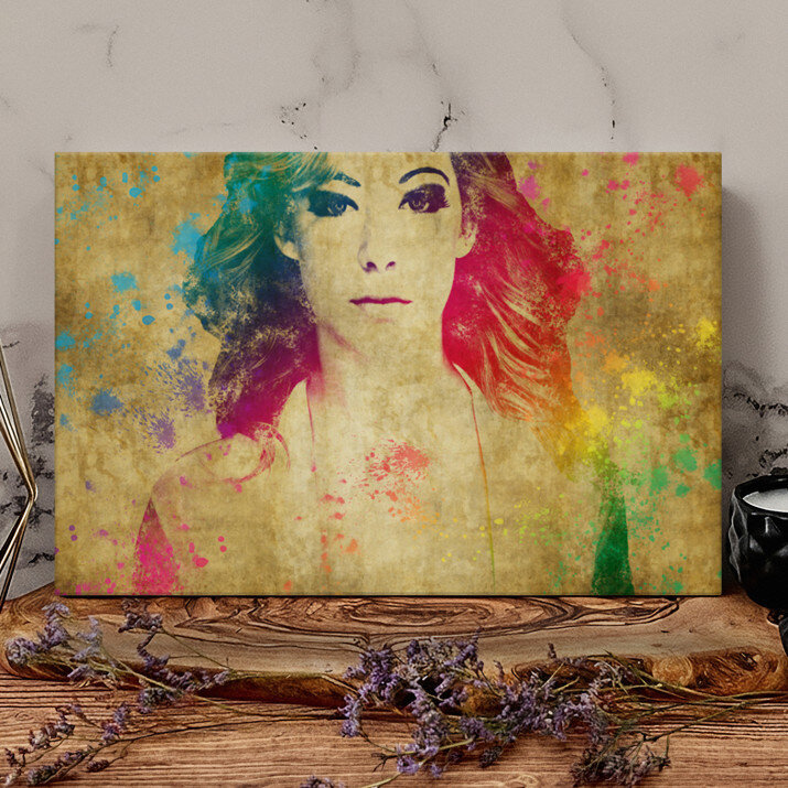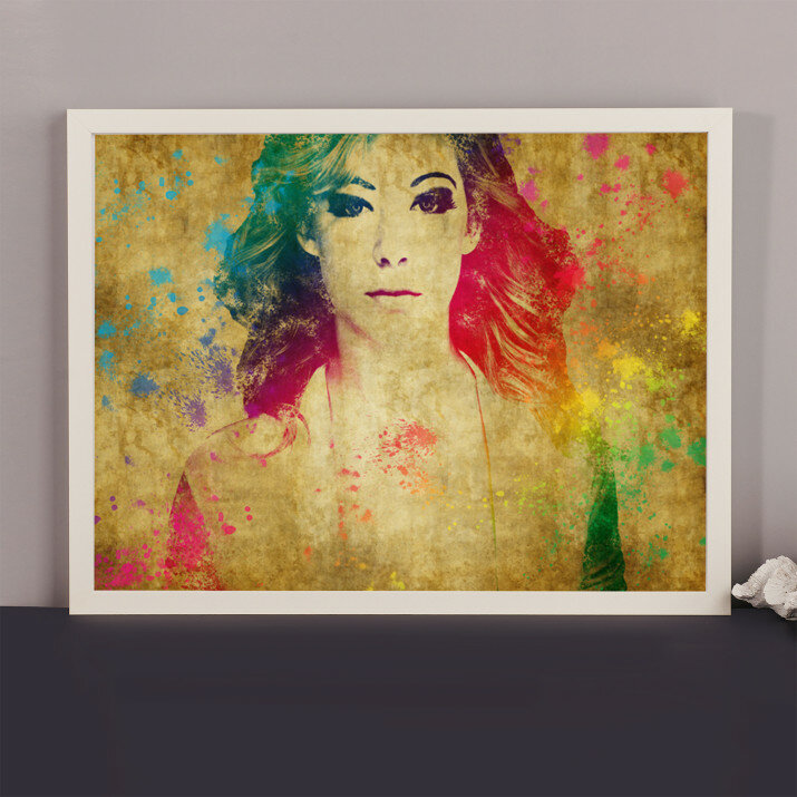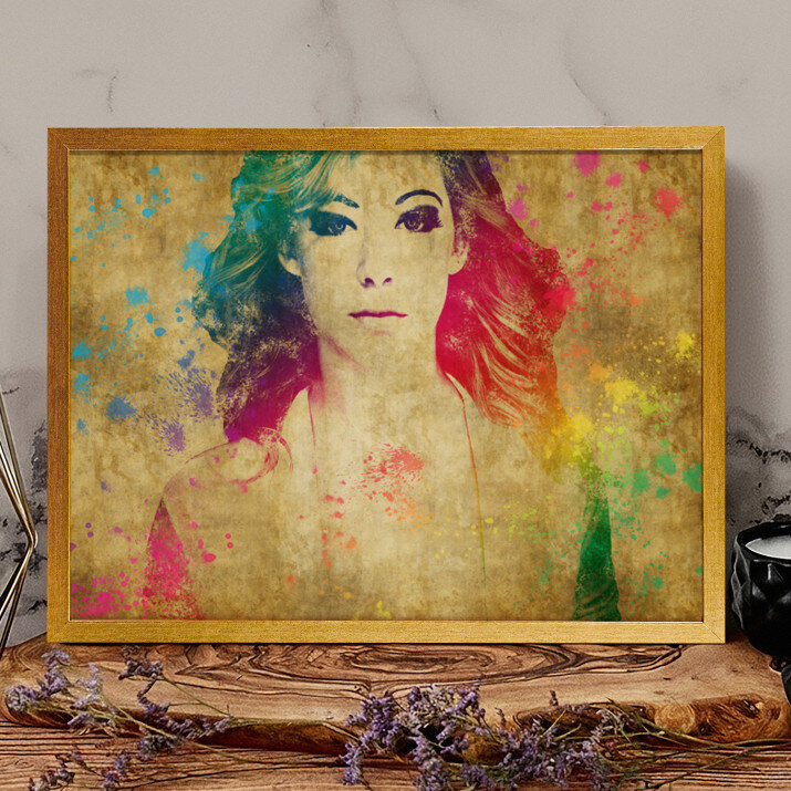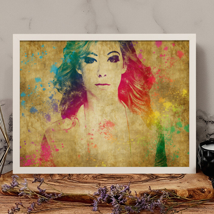 Az akvarell stílust az akvarell festményekhez hasonlóan erőteljes színek és intenzív festékfröccsenések jellemzik. Egy ilyen kép a falon mindenki figyelmét felkelti!STÍLUSOS PORTRÉ