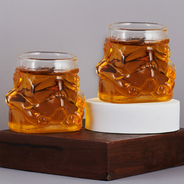 Ez az üvegpohár igazi kincs. Szenzációt kelt majd egy baráti estén, minden bulin, de egyedül is megcsodálhatod ragyogó formáját. Öntsd bele, amit csak akarsz, pl. whiskyt, koktélt, jeges teát, gyümölcslevet vagy akár tejet is, és varázsütésre megjelenik a legendás Stormtrooper sisakja.TERMÉKINFORMÁCIÓK